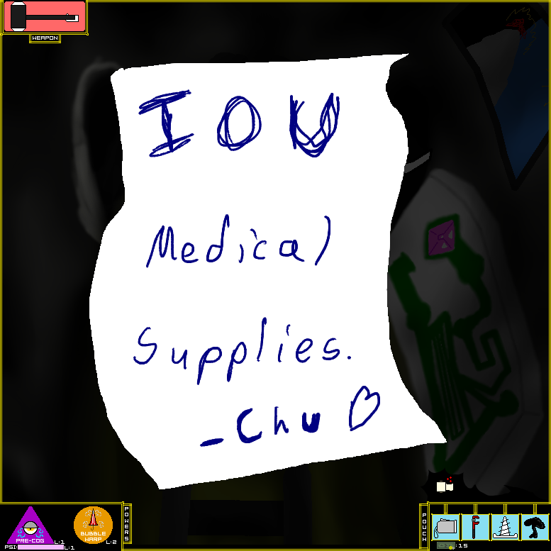 Inside is a note, and a roll of High Quality Bandages.
