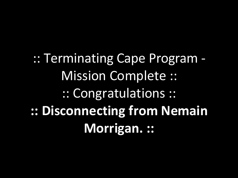 Help guide Nemain on the day where everything changes -- or nothing does! This quest features Chrono-Recall (Check Points), Independent Protagonist Exposition (Nem will do things on her own if nobody talks to her and she is aware of everyone's suggestions, picking the one she likes best), and Pan-Dimensional Manipulation (players may influence outcomes via Influence Points).