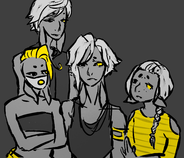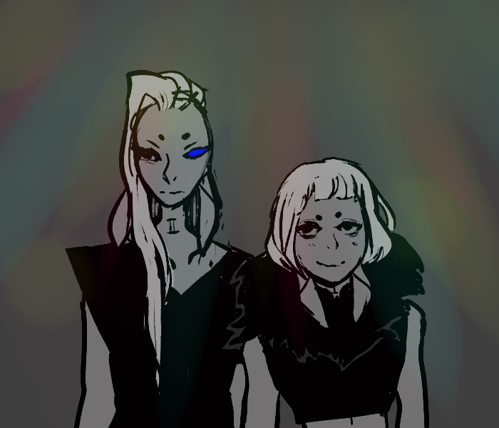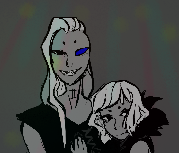 “You must be the most recent addition to Pluto’s Charge.” The shorter one has a soft voice, but somehow it seems to project even amidst the pounding bass reverberating through the warehouse; the taller one stays silent. “Goldie had mentioned that the Charge was recruiting, but I had no idea that extended even to celebrations like this one.”