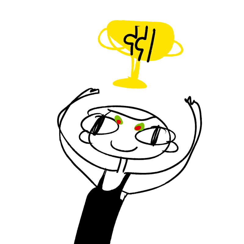 We double-win beause you forgot to draw your eyebrows as olives for like, three panels. Maing you the loser and us winner hahaha