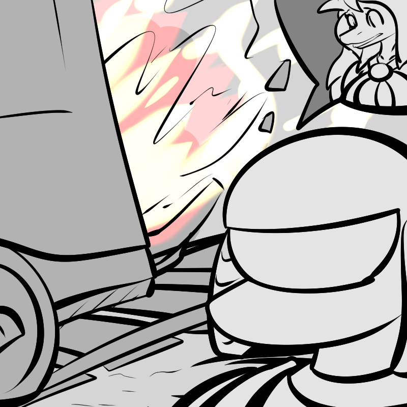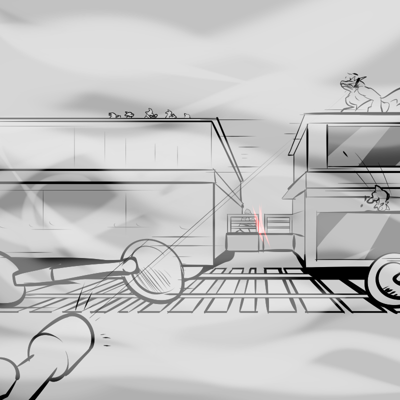 Its engine stops and it drops right onto the train tracks, but not before I yank the throttle to max to get out of here.