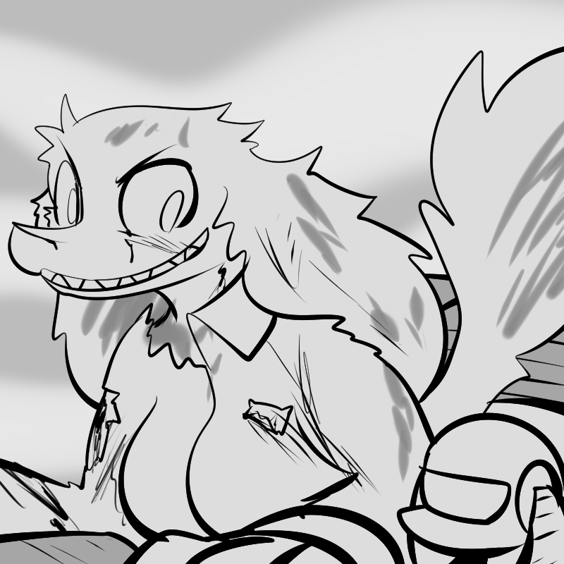 Rokoa and I are given light duty during cleanup in respect to our previous work, and she reminds me that I owe her a present. I forgot about it, and she insists on enough backrubs that I have to double check that she's not the fufa. The fufa ended up alive after all, and is given the chance to regrow in an ultrahive lab much to the belenosian's delight.