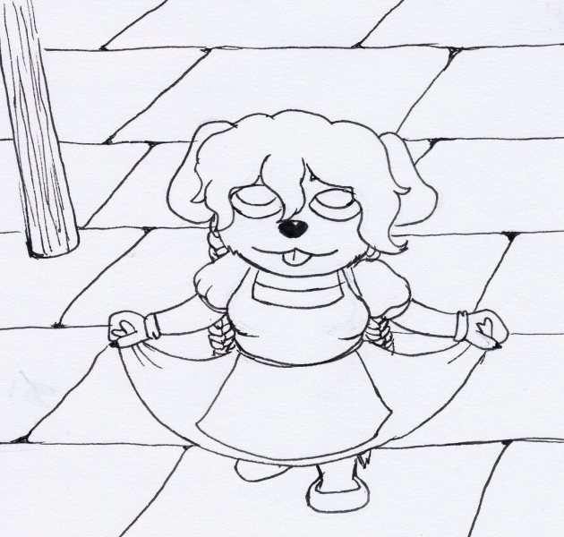You reach Swabluff's inn, 'Sita Mirinda's marvelous pieplace', and are immediately greeted by the owner, a short Houndling female, with three long braids and purple eyes.