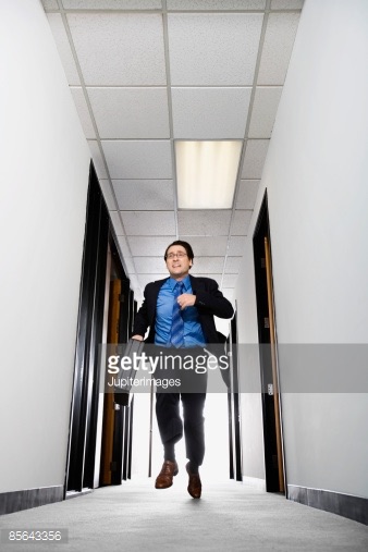 Call elevator, then use the stairs to administration. Find the file database and erase your files, be sure to copy any suspicious information you find to a flash hard drive. Then find the secret exit that every bureaucrat keeps hidden for a quick getaway after a hard day's embezzling.