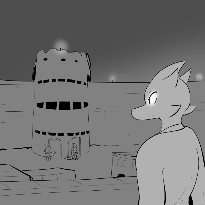 But lots of dice are thrown as I wander about. It is almost difficult to find a private place to check my compass needle with caution, and mixed with the fact that streets are seldom straight, and when they are, they aren't for long. I must weave between buildings, but given my upbringing in caverns, it hardly throws me off. Meanwhile, I hear much gossip from kobolds in the streets, talking of dragon hoard and riches. Apparently, some kobolds have saught to leave the outer walls and run to the dragon's place in an attempt to find it themselves! However, the palace has guards all over the place - and indeed, I see the occasional lizard guard roaming the streets - preventing the kobolds from leaving.