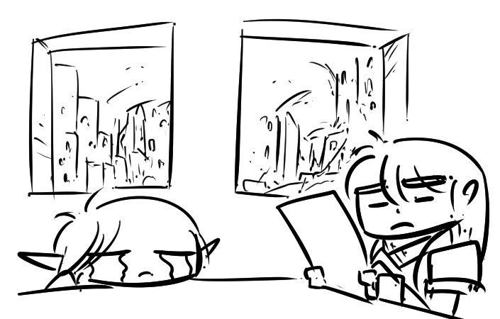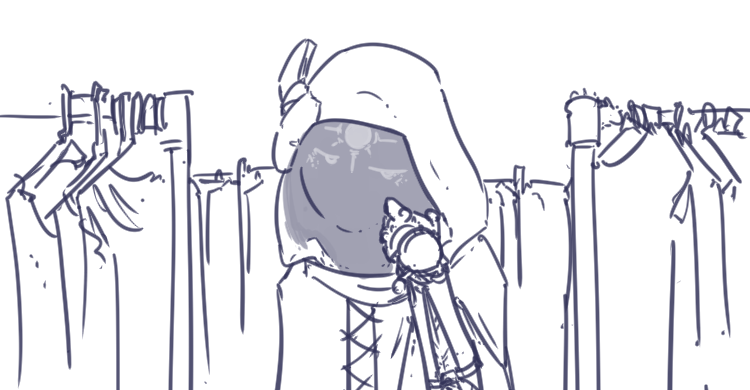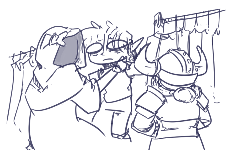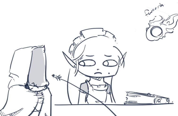 “Oh I don’t know, you know kids. Always on about precious heirloom this, priceless artifact that. If I had a nickle for every wide-eyed hero coming to me about a ‘timeless artifact of great strength’ they need to defeat ‘the ultimate evil destroying all the land’ I’dve retired by now. Sometimes it feels like these ‘great ancient artifacts' are growing on trees. Where do they all come from? Did some blacksmith thousands of years ago spend all day forging magic swords thinking ‘gee 1000 years from now this will help in an oddly specific scenario. Always swords, too. Why swords?” They walk around the room, grabbing armfuls of various books, wands, and vials. In the process they pull out a box full of weird looking swords. “Don't mind those, they’re just experiments. I’m probably going leave them at the bottom of a dungeon somewhere. Maybe stick one in a stone.”