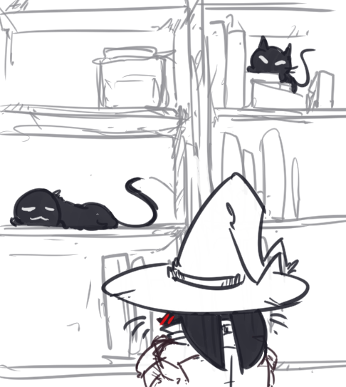 They walk off somewhere, leaving me alone in a room full of strange magical contraptions. Those ‘cats’ all over the place start congregating at my feet and making weird noises at me.