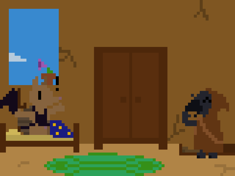 Stick together with Lucy in watching over Emerald while you guys gather up supplies, you can keep chatting while having an extra pair of eyes on her. You might need to make some sheets into wraps for Lucy to help protect her from the sun and sand while you guys travel the desert.