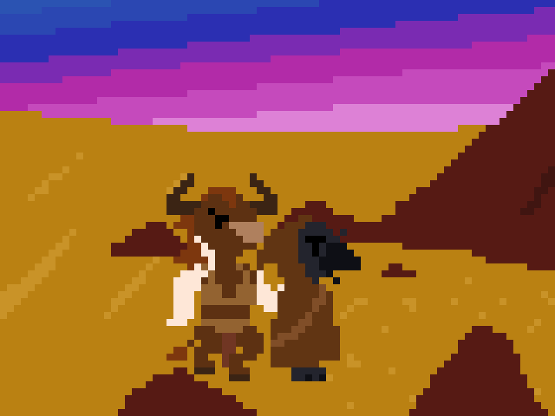 Raven: "Alright. Before we try and cross the desert, we'll need food, water and rest a bit before we go."