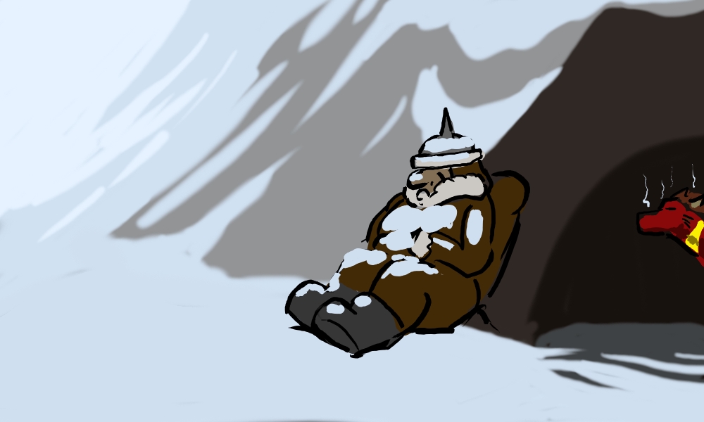 >>71029 Check the snow. I doubt he just plain took off out of the cave entrance. There should be tracks leading out if he left this way.