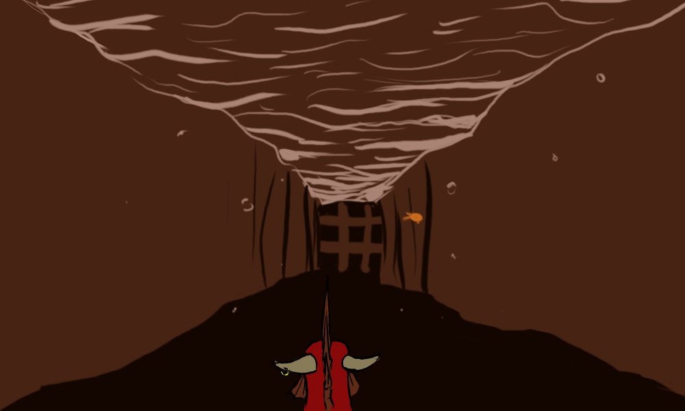 "Sure, you can see my face!" He's a youthful goblin, it seems. "I'm not sure where it goes to, there's a large grate downstream to keep the carp bigger than six feet or so from swimming up; they're dangerous you know. It probably just ends up above ground somewhere, most of them do. I've never been outside the city, to be honest. Why would anyone want to really? We have everything we could ever need here!" >>73333 No, it's really clear, the stone around it is brown though.