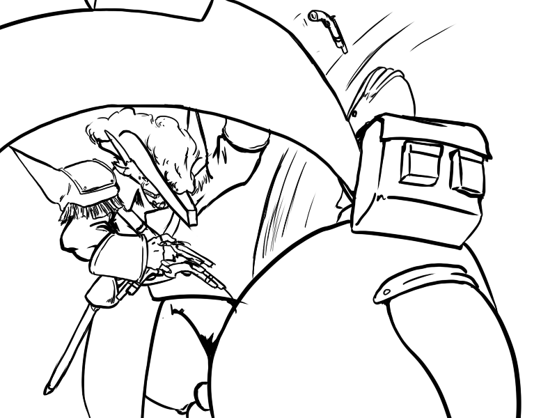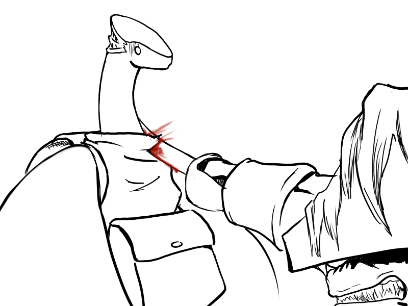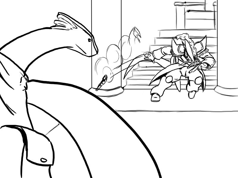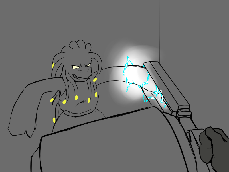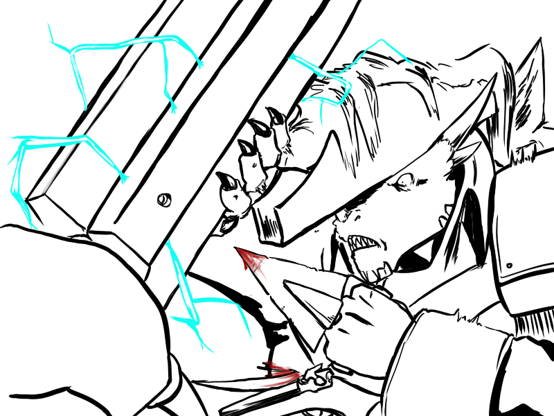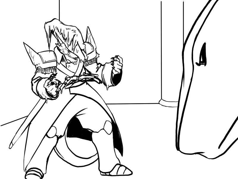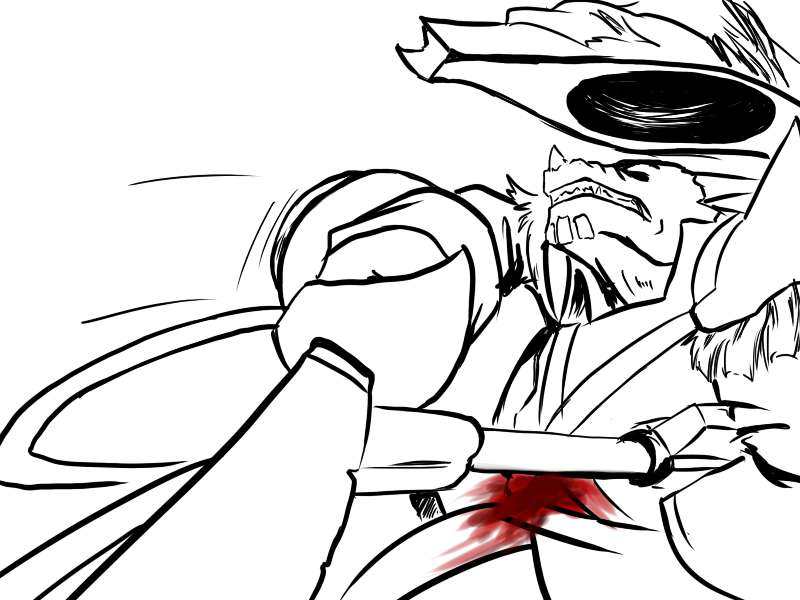 Ok, right. We've set it up. Deme's been using upper body for the last few attacks - particularly, with a big, heavy, intimidating, and above all attention-grabbing cudgel. That is what he will focus on.