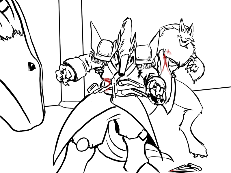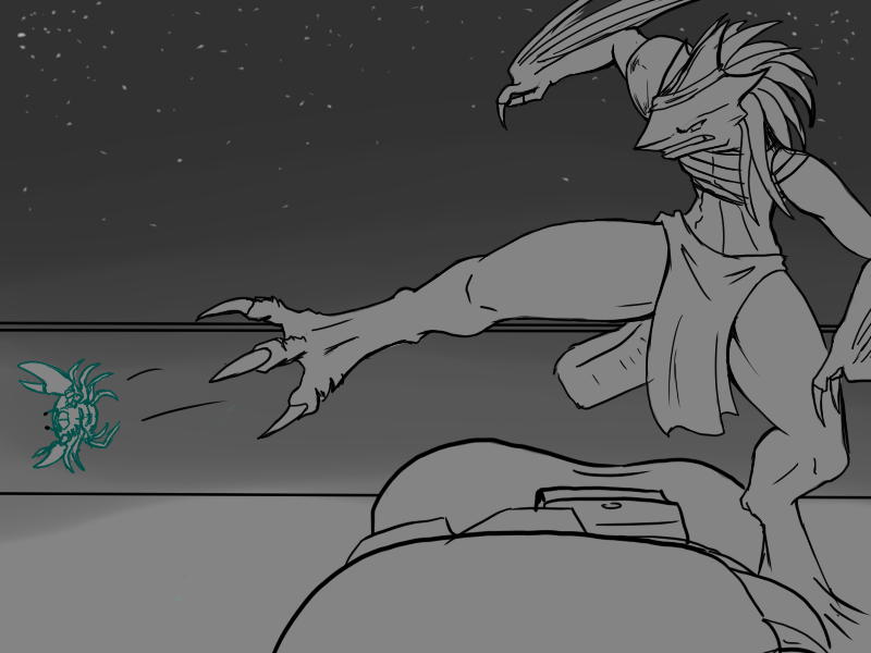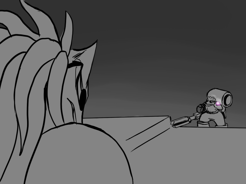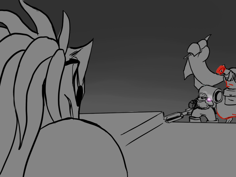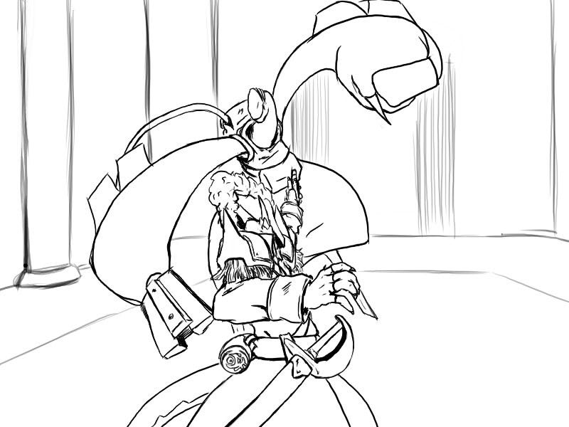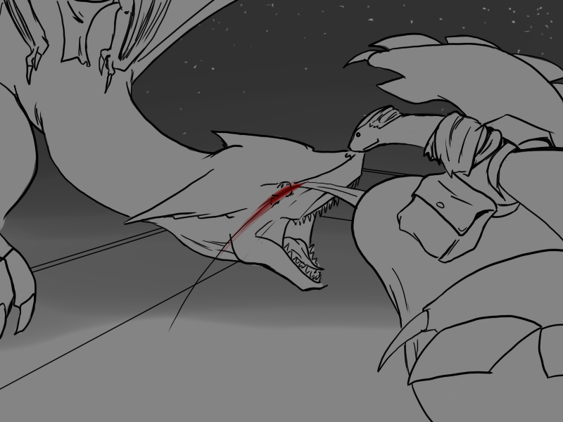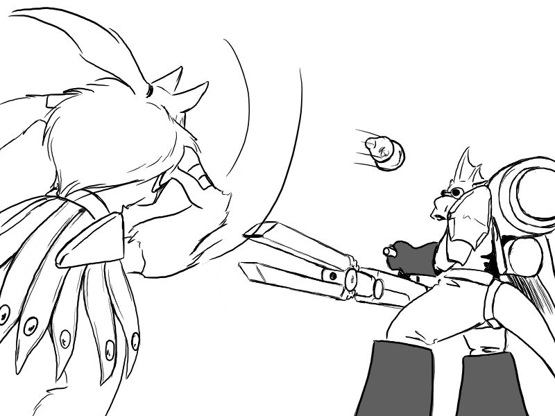Ok, right. We've set it up. Deme's been using upper body for the last few attacks - particularly, with a big, heavy, intimidating, and above all attention-grabbing cudgel. That is what he will focus on.