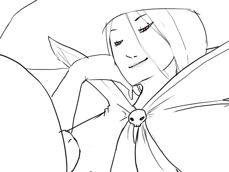 The creatures continues to move towards Mudy in silence. She halts right in front of him, towering above as she looks down.