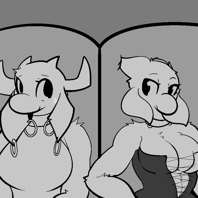 Coral's hands wander down to Naylia's butt, to which Naylia idly tugs and plays with Coral's earrings.