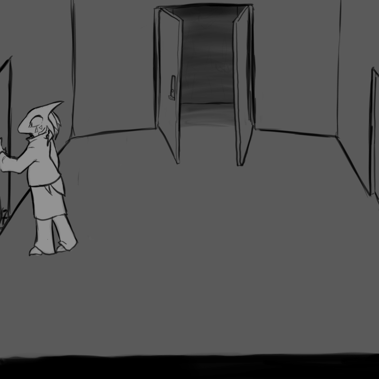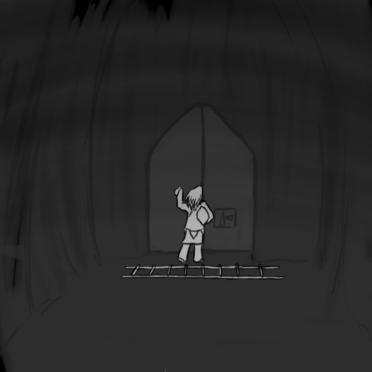 There is no string. The only things in this room are the door you came through, the pile of sheet music, the writing board, and the door on the left wall.