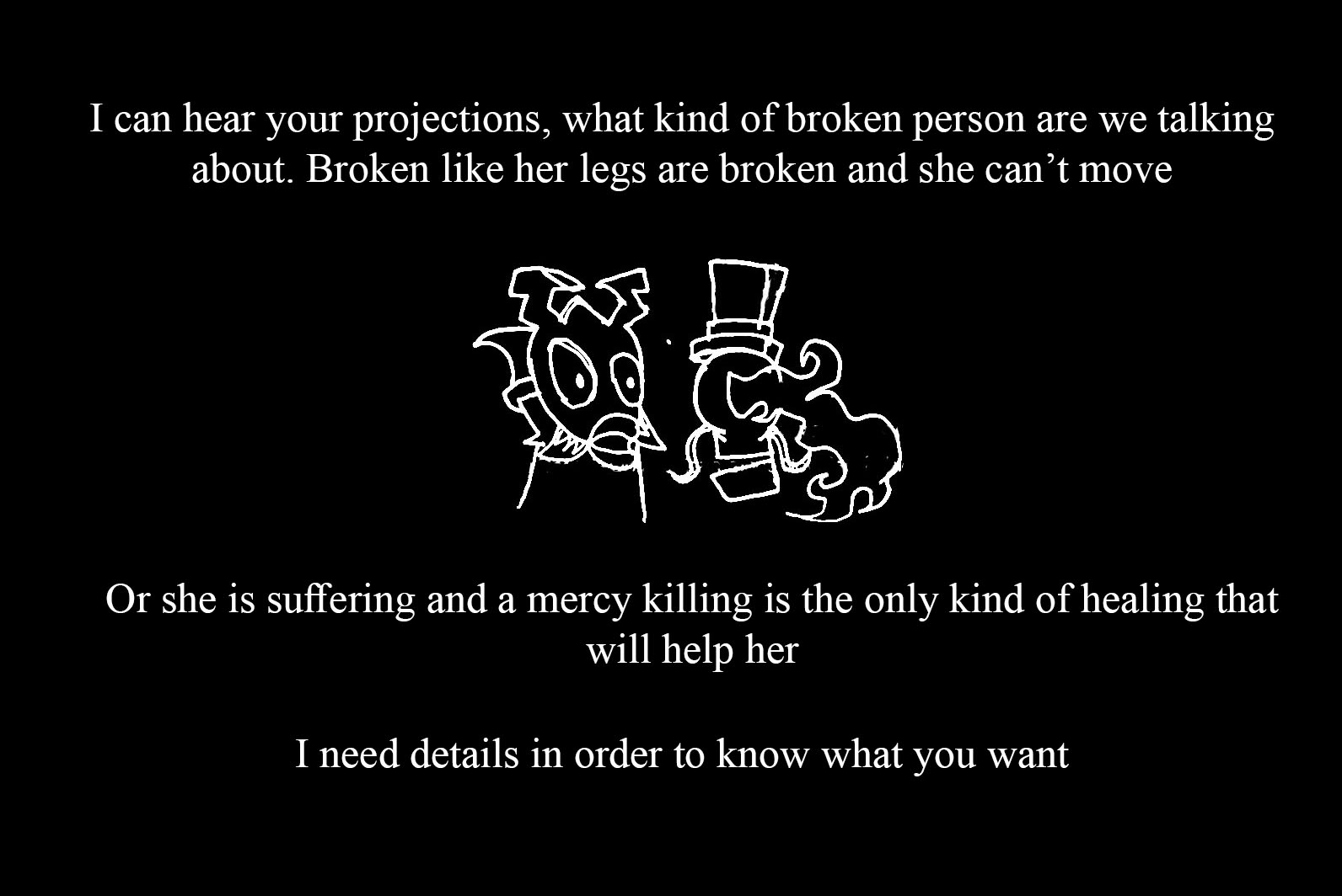 Lorence, as I said, owes us for helping him escape prison, and probably saw Clara as a valued member before her injuries, and may want the chance to bring her back. He might be more willing to help us if only for that reason, though, there was that time during the end of Meaningless Ticking where he said he was going to evaluate her to see how loyal she is to the cult. Perhaps after his evaluation he is going to use the needle of life that we might give him to heal up Clara, but we cannot be too sure if that is what his intentions are, as we cannot see into the future. We can only theorize on that. Even if the evaluation is for seeing she is trustworthy enough to heal, it all hinges on whether or not Clara can pass the evaluation. I don't think she did anything to purposely anger Lorence though in the past. Plus, we run the risk of Lorence not telling Clara or Rosalia that it was us who gave him the needle of life to heal her. He is our enemy in the cult, after all. Lorence is also known to hate curators, and might not want anything to do with the delivery, but maybe the shopkeeper can use clocks as an advantage.