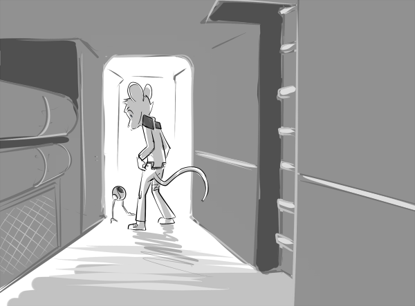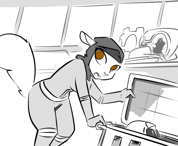 Deep inside the ship, a young man wanders through unused access corridors. He's muttering to himself words of injustice, having recently been released from security. Their questioning took hours, and looming overhead was the constant threat of being put on ice. The security forces left, saying something about another ship, and when they returned most of them were sporting fresh injuries. They let him go with the instructions that he tell no one what he saw. Now, worried and angry, he looks for his brother.