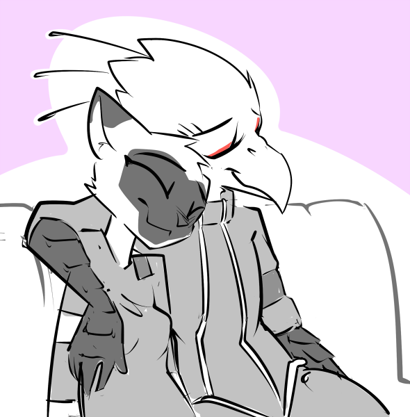 Her head tilts over and lands on yours. The two of you sit like this and rest, listening to the soft buzz of air conditioning and distant bustle of busy people. You find your fingers picking idly at the ratty surface of the ancient couch.