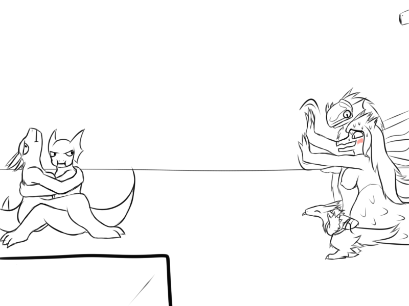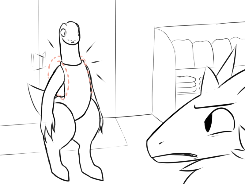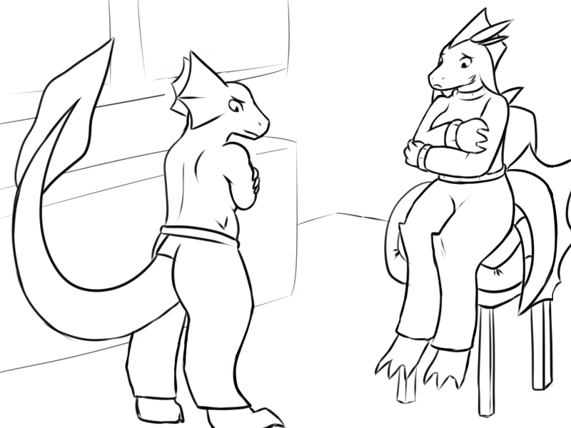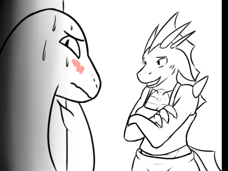 The male lizard speaks. "So you brought friends now!? What kind of sick pervert are you!?"