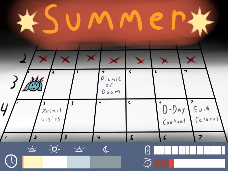 As for why you want to go camping... well, recently you've gotten reason to worry that Skif's parents maybe don't approve that much of you and Skif being together the way you are. Like, you know, they've got their traditions and that knight stuff and they're worried Skif won't live up to them or reach his full potential if you're involved with him! So you and him want to go out and have a bit of an adventure and training together and prove that not only are you good as a couple but Skif is totally even stronger with you to help him out and encourage him! That's one reason to go camping with him!