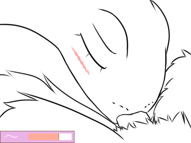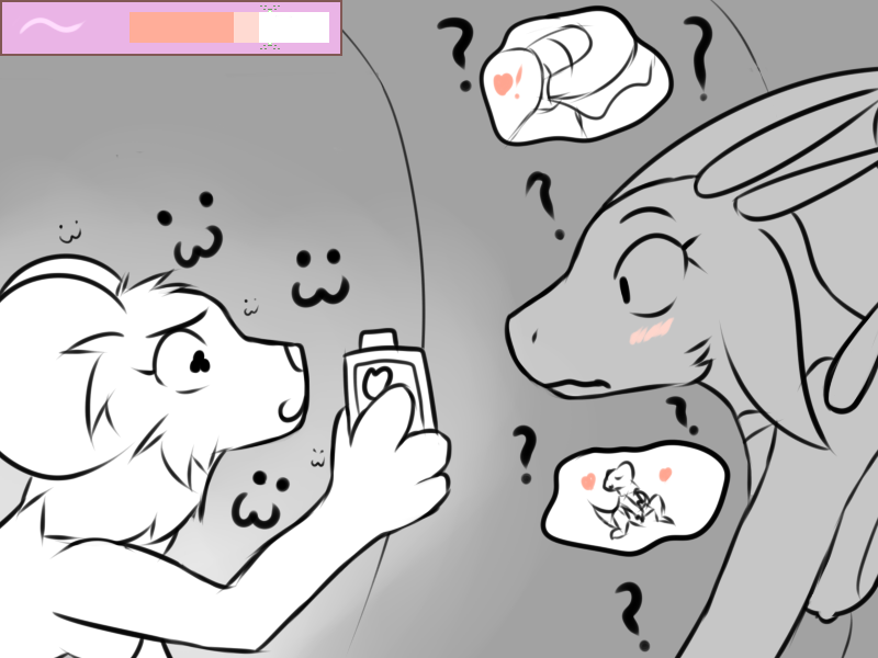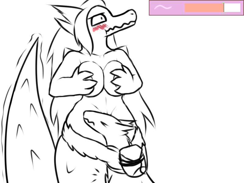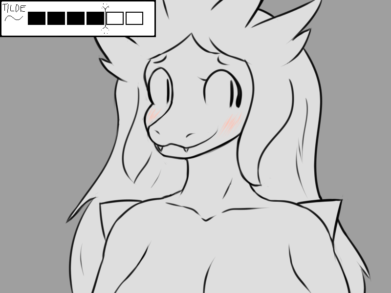 With great effort, you stop yourself from making the sounds one would make when something soft and warm brushes against one's most sensitive area while they're at 70% tilde. In your moment of vulnerability you instinctively grab your breasts and now you hate yourself a little bit.