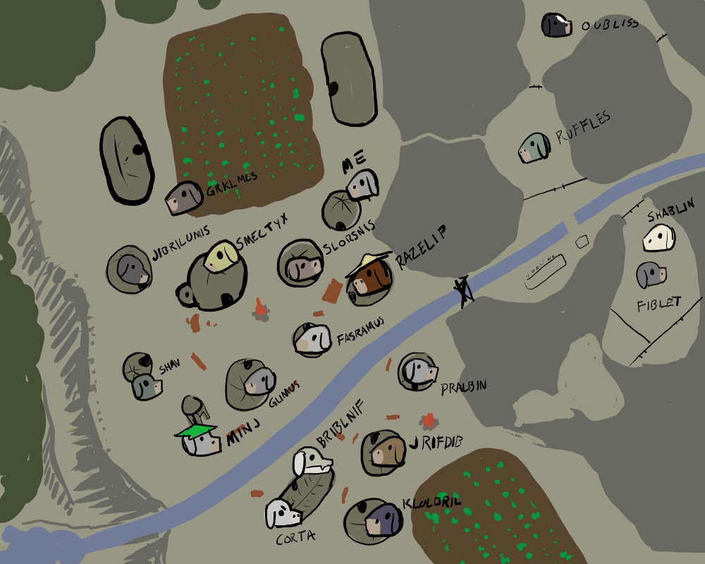:tronklis: Fiblet is really bad at tracking and looking at stuff which is why I always come along on these things. She is only good at fighting. We've got Jibrilumis and Griklmls with us. Jibrilumis is good at cleaning fish and is learning how to set traps, where Griklmls is good at sneaking and catching spiders.