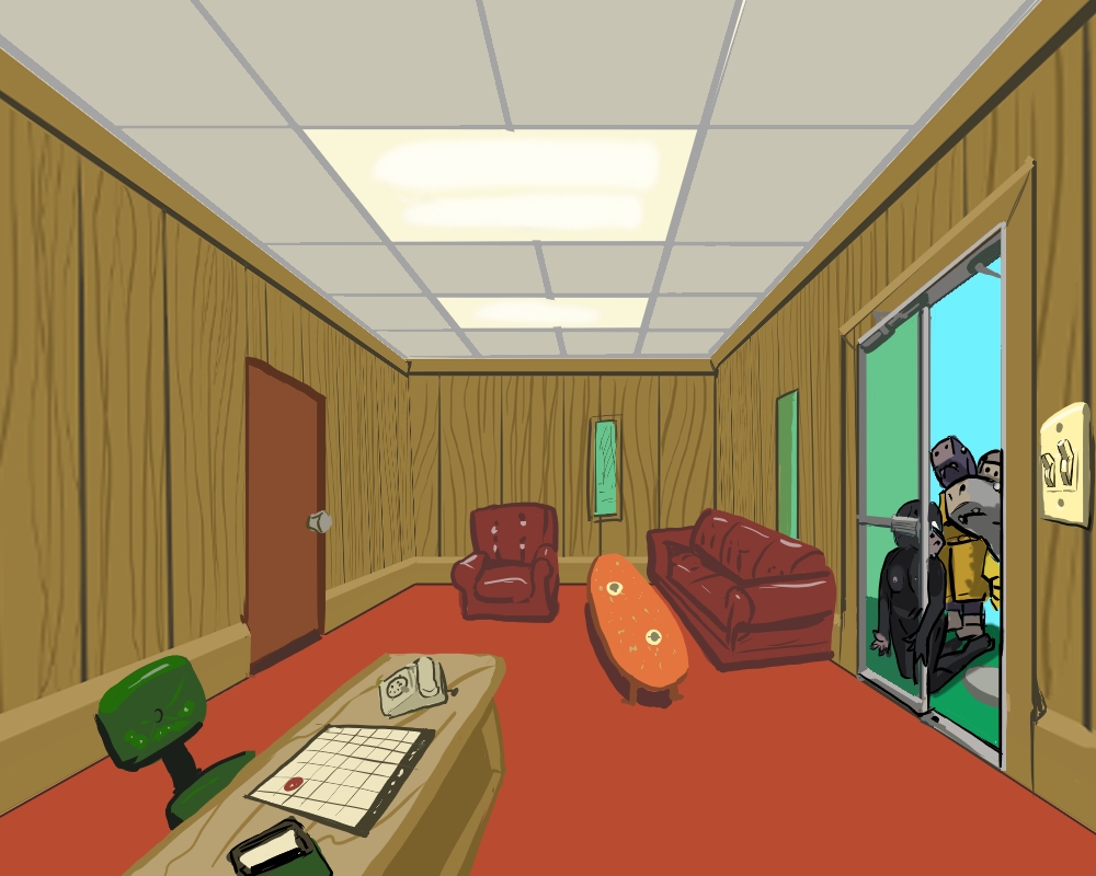 :tronklis:"GO GO GO! GET TO THE BLUE ROOM!" Everyone starts running! The place is getting pulled in behind us, but I think we can outrun it! The building is being ripped to pieces! I can see daylight through the holes!