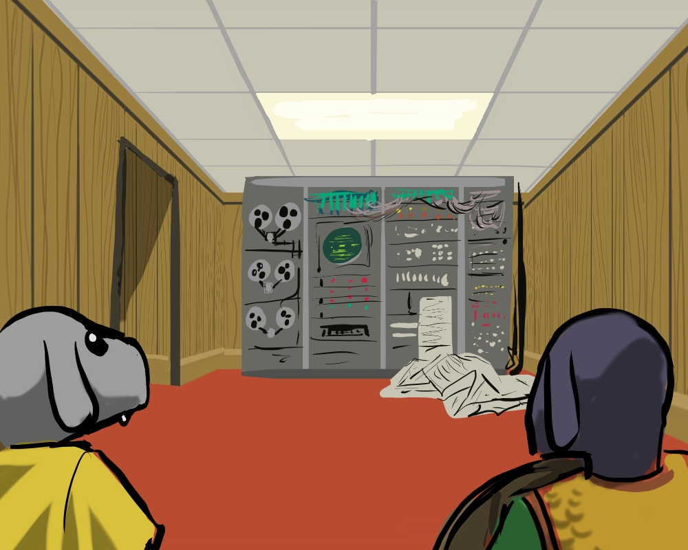 :tronklis: A horrifying scream starts coming from the pipe room! Or is it a laugh? There's so much noise and screeching metal I can't tell which! We're almost to the blue room!