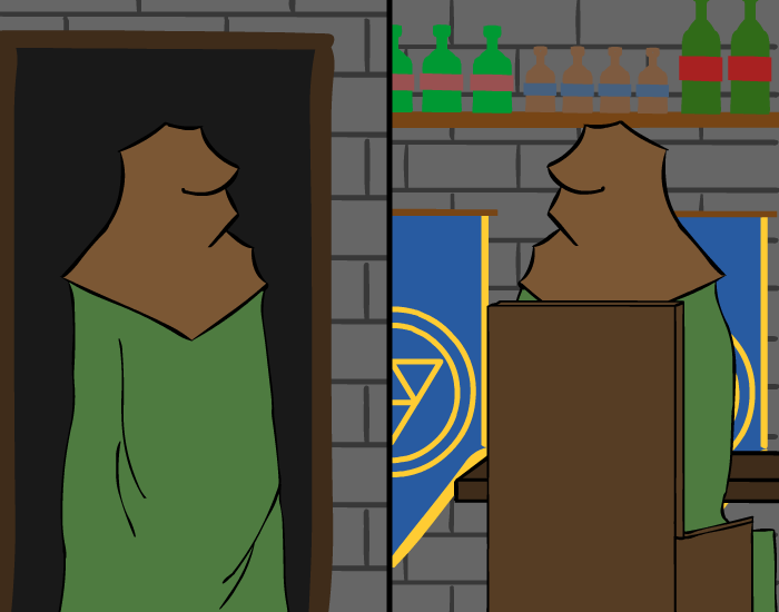 Oh, and you almost forgot why you’re here in the first place! You need to find out who was behind the destruction of your village… somehow. You really haven’t gotten any closer to that today, have you? You’ll need to try and find more information about it tomorrow.