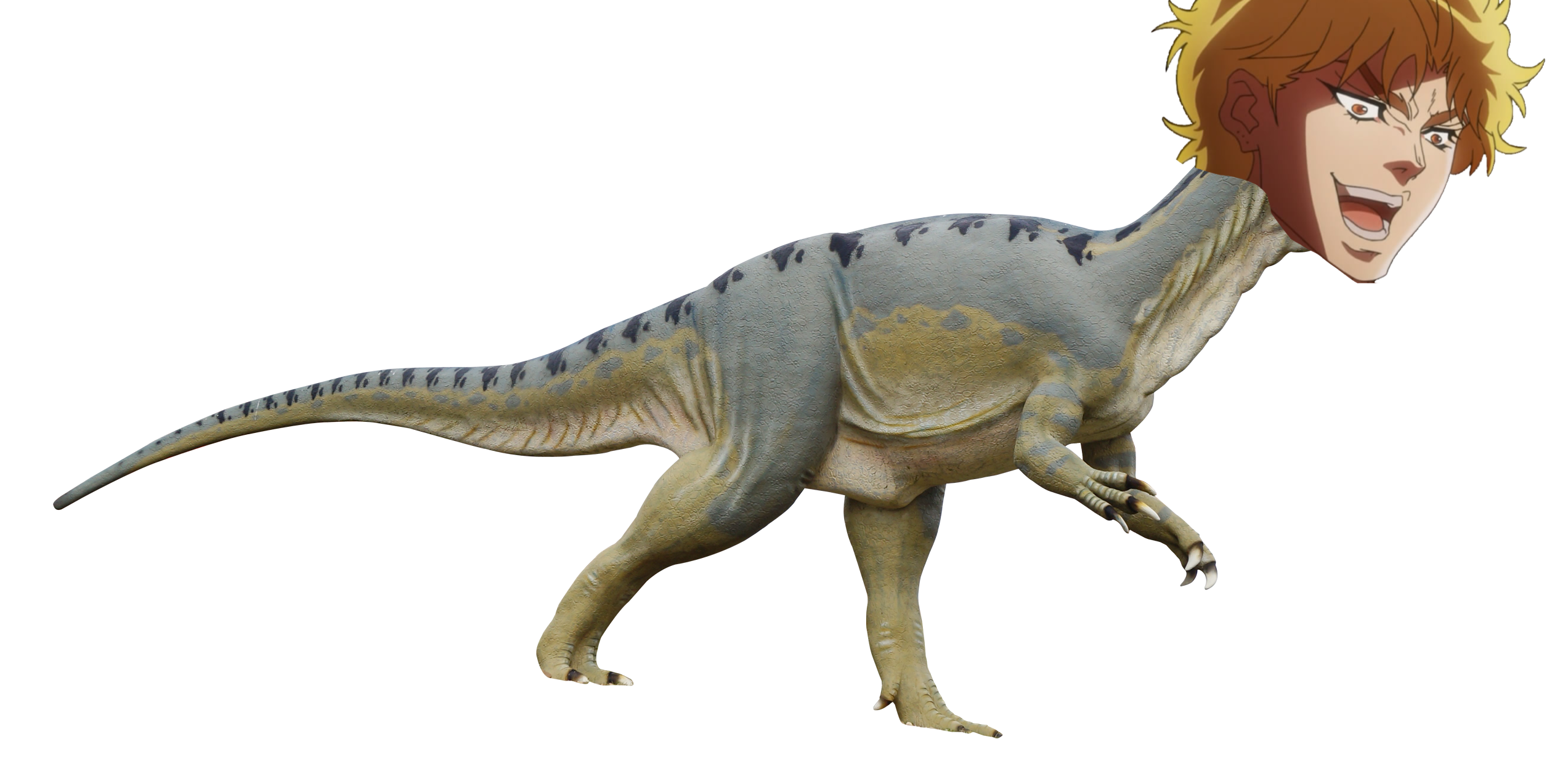 :DioBC: Expecting a picture of Diego Brando raptor form from Steel Ball Run? TOO BAD. BADLY EDITED DIO DINOSAUR TIME! WAAA! I MEAN WRYYY!!