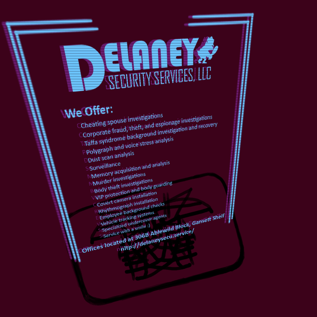 "Got a place I usually hit up for lunch over on Gansett, near my place. Little hole in the wall called Barth's -- the address is 217U." She reaches down and grabs the equipment case. "If somethin' comes up, hit me up -- my holo's 'oh_no_its_q@bliypylon.ward'"