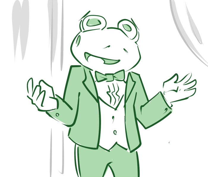 The frog blinks as he swallows. “Me? Oh- oh dear. You know I’ve dreaded this day. Its never easy letting someone go... although this is a bit... different from what I had imagined...”