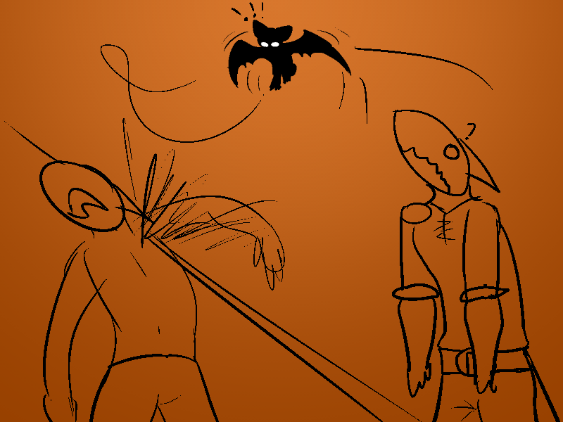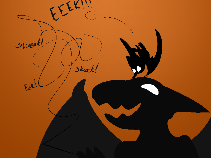 I let go of the stick and do a evasive maneuver, easily done without the weight of the stick, and enter it's cloak! It starts making panicked noises as I crawl around in there and bite him all around! Then...