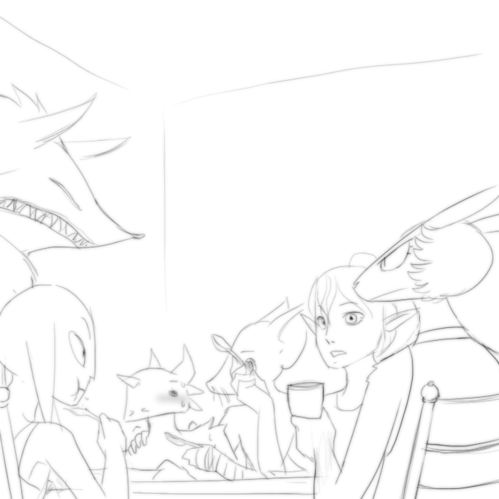 "Our main warrior is Black Fang, a gnoll former mercenary. He is rather intimidating, but won't hurt anyone in the group. Our alchemist, with whom you may find yourself working the most, is Grek, a goblin former tinkerer. She has invented a way to superheat metal."