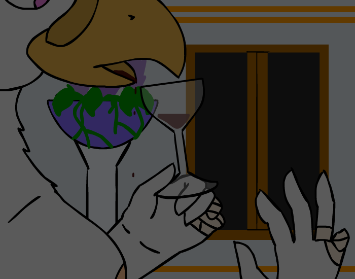 You make your way over to him, put your hand on the wall behind him to get his attention and lean towards him, close enough for your beak to almost touch his snout. Then you put on your best expression and sultry voice.
