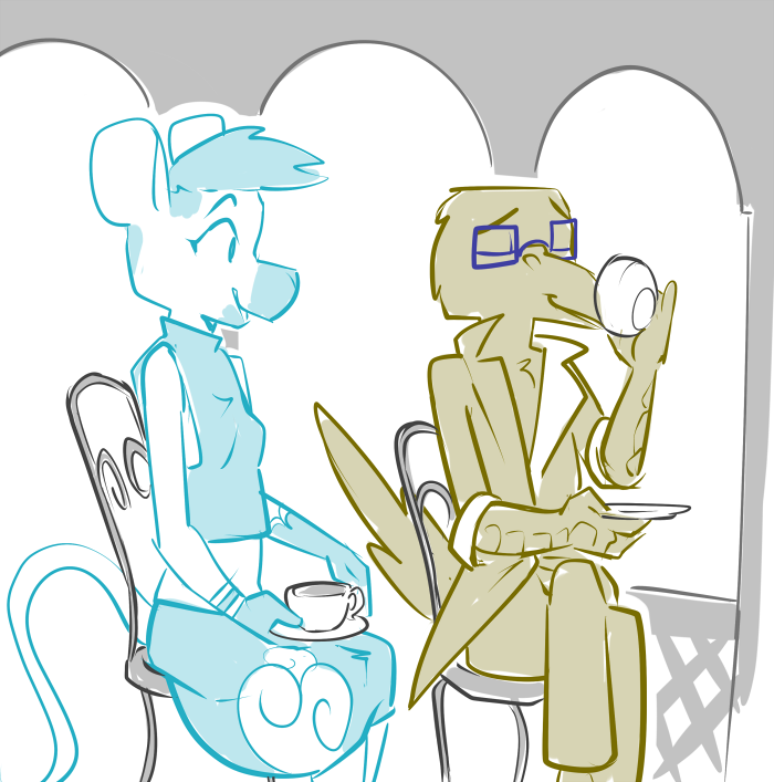 The bird rolls his eyes and sighs, “I can’t keep anything from you, now can I? Yes, I’m dying to go. Unexplored ruins at the top of the world? It sounds spectacular.” He takes the deity by the wing and leads him on. “Come, join us on the veranda for tea. There’s much to discuss.”