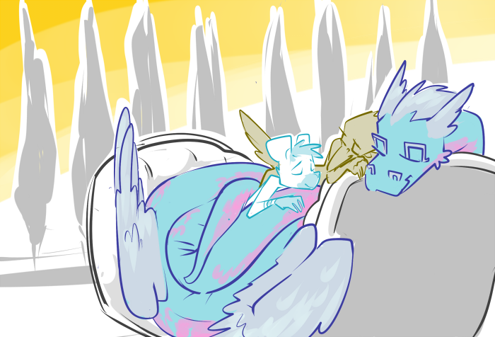 [spoiler]Cecil slumps against the balcony and gasps for breath. Flashing Feathers pauses his thrusts. “Are you alright, Beloved?”[/spoiler
