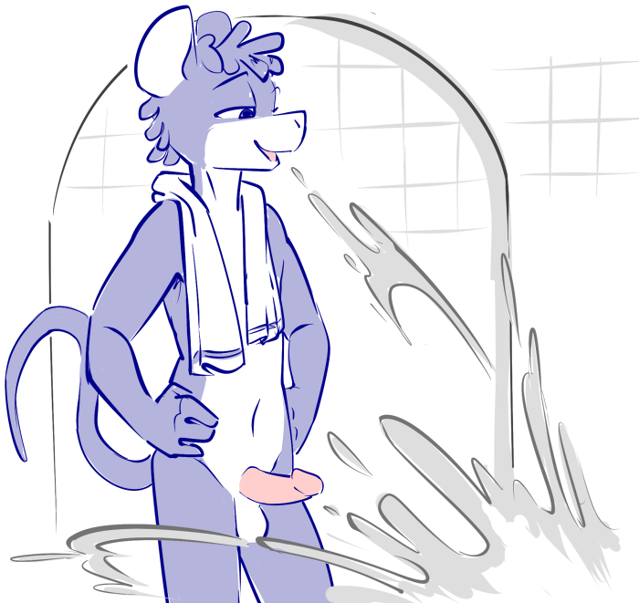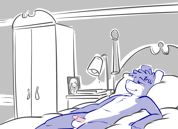 “Oooh, oh my. Yes, this is nice. Thank you...” He glances down to watch the second shaft bobbing between his legs. His eyes filled with color, he remarks to his partner, Simply glorious... Remind me to have a mirror commissioned to make it easier to watch...”