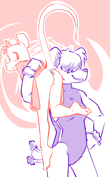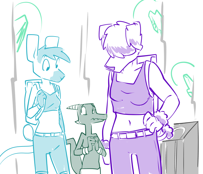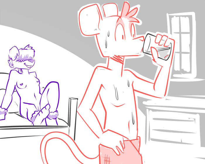 “If I may, its been a pretty demanding day. I don’t know if he’s up for the full extent of your endurance.” Casey points out. She squeaks as a pair of fingers tease between her thighs. She returns the gesture and spreads her legs for the kobold.