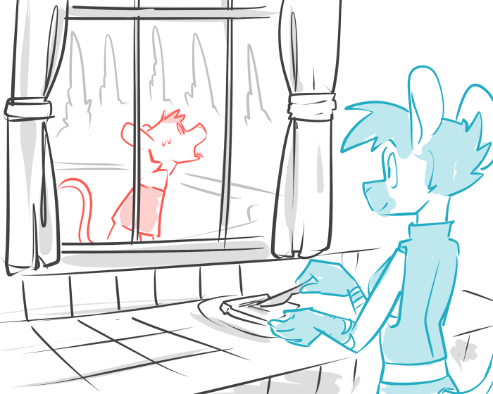 The mice look to one another in surprise. Mr. Ochre had mentioned how well Flashing Feathers had done adopting the modern dialect, but his new form comes as a bit of a shock. “T-thank you, Flashing Feathers. Its good to see you again.” Says Casey after shaking off her shock.