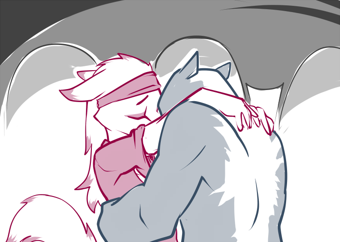 Behind her, Gabe matches Kol’s pace so that she’s always filled. His cock glides smoothly between her asscheeks, stretching her deliciously with each thrust. Her tailhole, ah! So sensitive and a little sore but feeling amazing! Gabe is easy and gentle with his movements, knowing just how much his partner loves anal when done right. He looks down at her upturned tail and watches it twitch with delight as the head of his cock tugs at her ring. The two boys work in a gentle, measured rhythm as the slap and pant of three bodies fucking in the moonlight grows heavier.