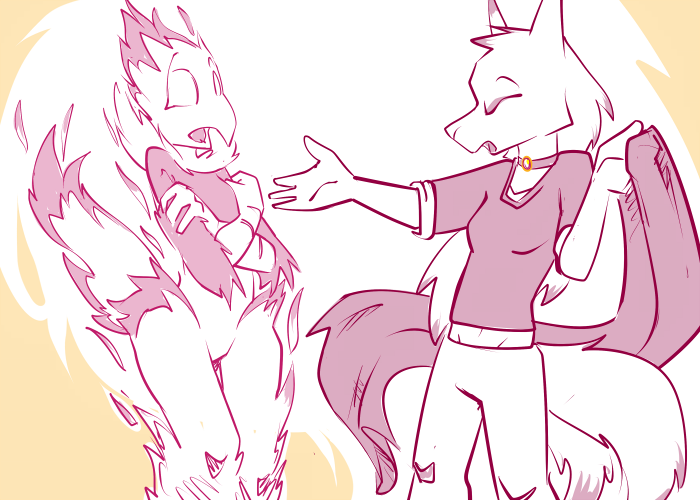 “Uhhh, helped Miki and Raithe track down their phoenix friend before she burnt the city down. And introduced her to Vivian, who took her to her private space for aaah... more intimate meeting.”