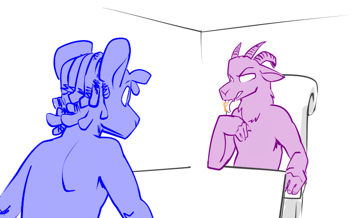 Rodwin leans forward, his branded tongue drooping above his steepled fingers. His expression is patient and serious. “It’s been a little while, hasn’t it? Three months, I believe?” His voice is soft and not unfriendly. “I apologize for coming to you in this way, but I was curious if you have made any progress on your search...”