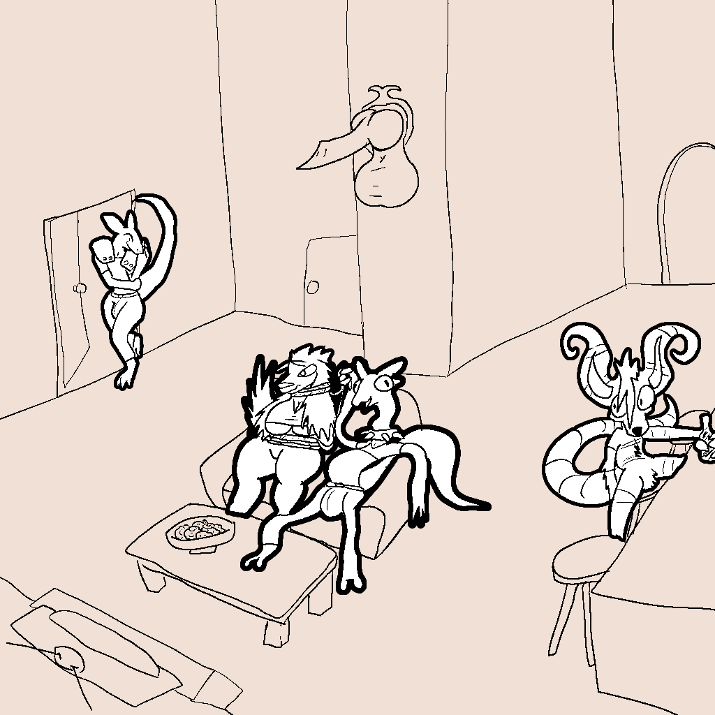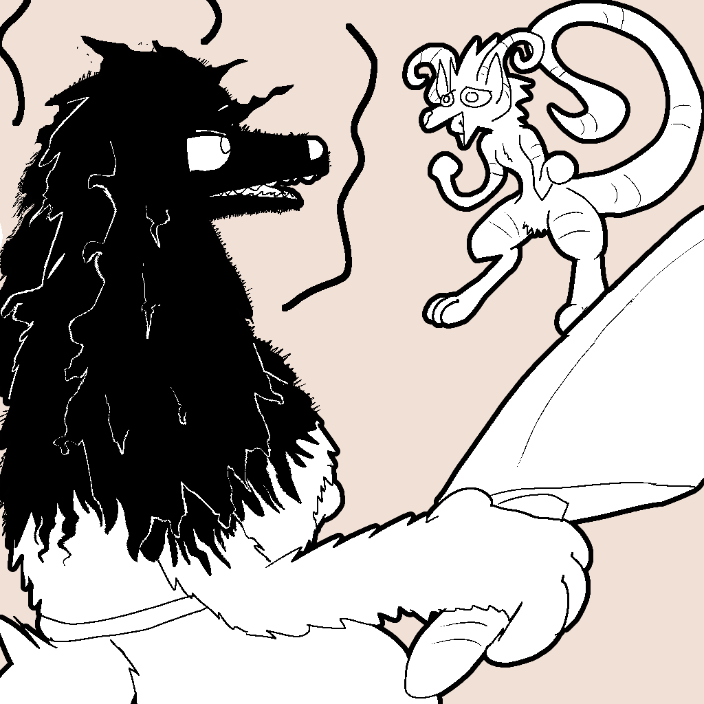 The hoard turns out to be martial arts media and paraphernalia from across many worlds, maybe even multiple realities. I get Irib to hide on the ceiling, while I hide behind a big sculpture of a noodle dragon.