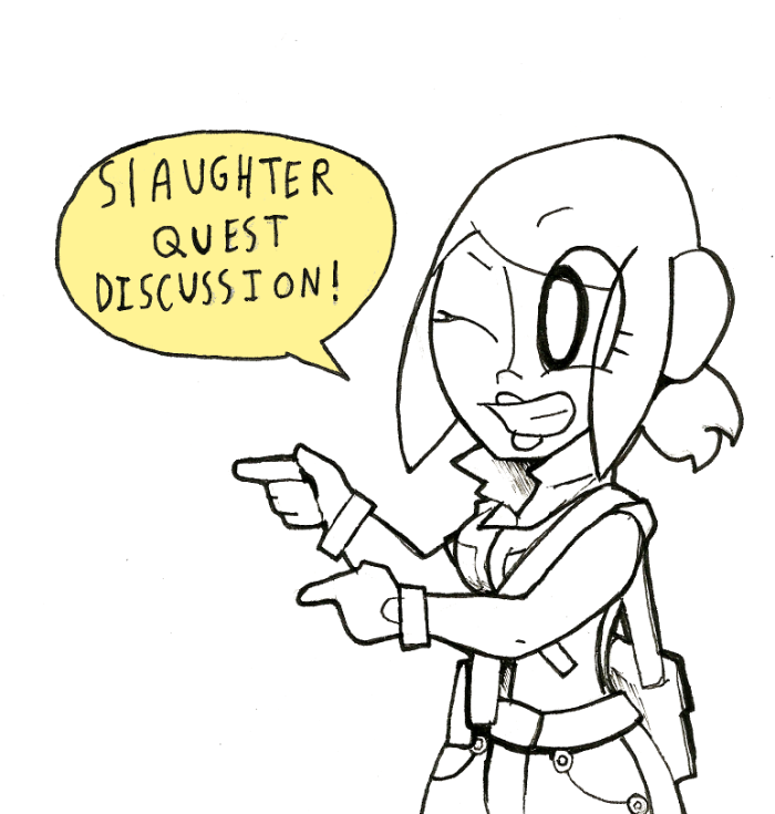 Hey, it's that quest where the girl shoots a lot. Direct all your Slaughter Quest related stuff here!