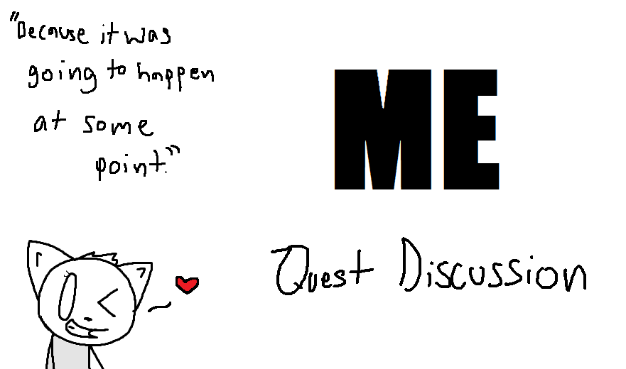 THIS IS A QUEST-DIS FOR ALL OF MY QUESTS; PAST, PRESENT, AND FUTURE. THE PURPOSE OF THIS THREAD IS TO AVOID THE CREATION OF QUEST-DIS THREADS FOR EVERY INDIVIDUAL QUEST I WRITE. I WILL ALSO TALK ABOUT MY QUESTS HERE, AND YOU MAY TALK ABOUT THEM IF YOU WISH. IF YOU HAVE QUESTIONS ABOUT A QUEST WHICH IS MINE, YOU ARE PERMITTED TO ASK THEM IN THIS THREAD.
