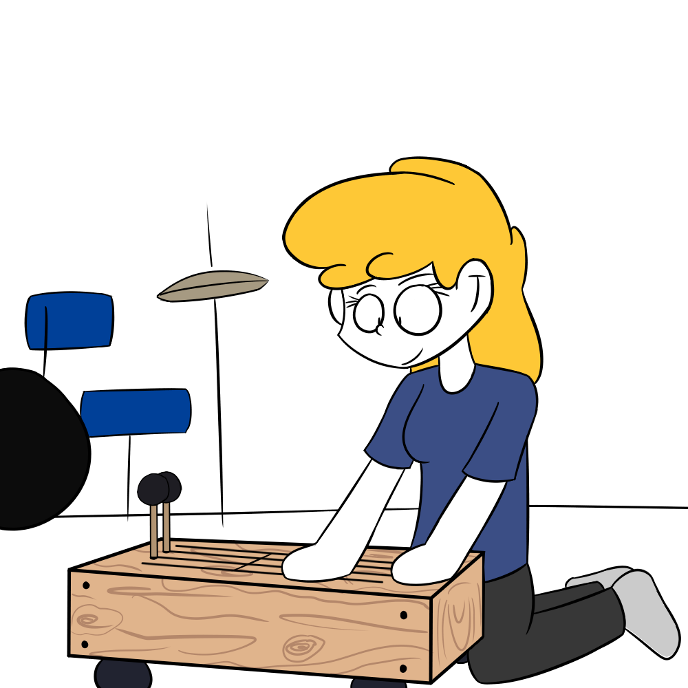The woman I was searching for was, quite literally, an angel. She had wings and... horns? Not something that I'd associate with them, but I've never met an angel. The form listed her as a drummer, so I decided that the music store would be the best place to look around. I chatted to the person running the counter, and they brought out the instrument that I am now inspecting.