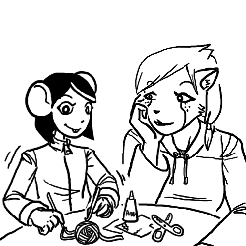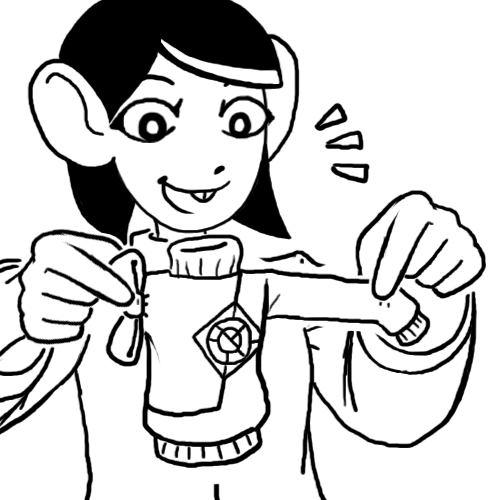 Somehow, Erim successfully gathers the materials she needs, and has them made into an outfit! When the outfit is complete, she meets up with Wretch... somehow... to hand off the gift!