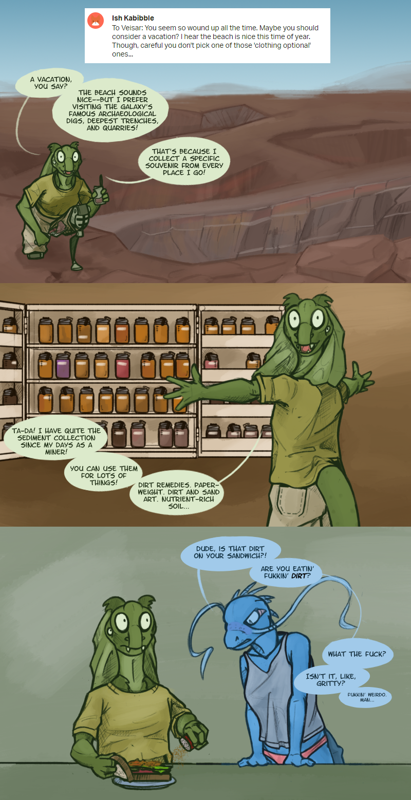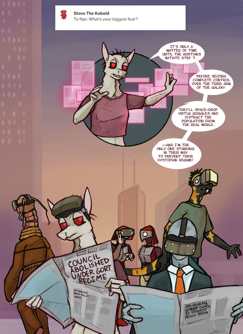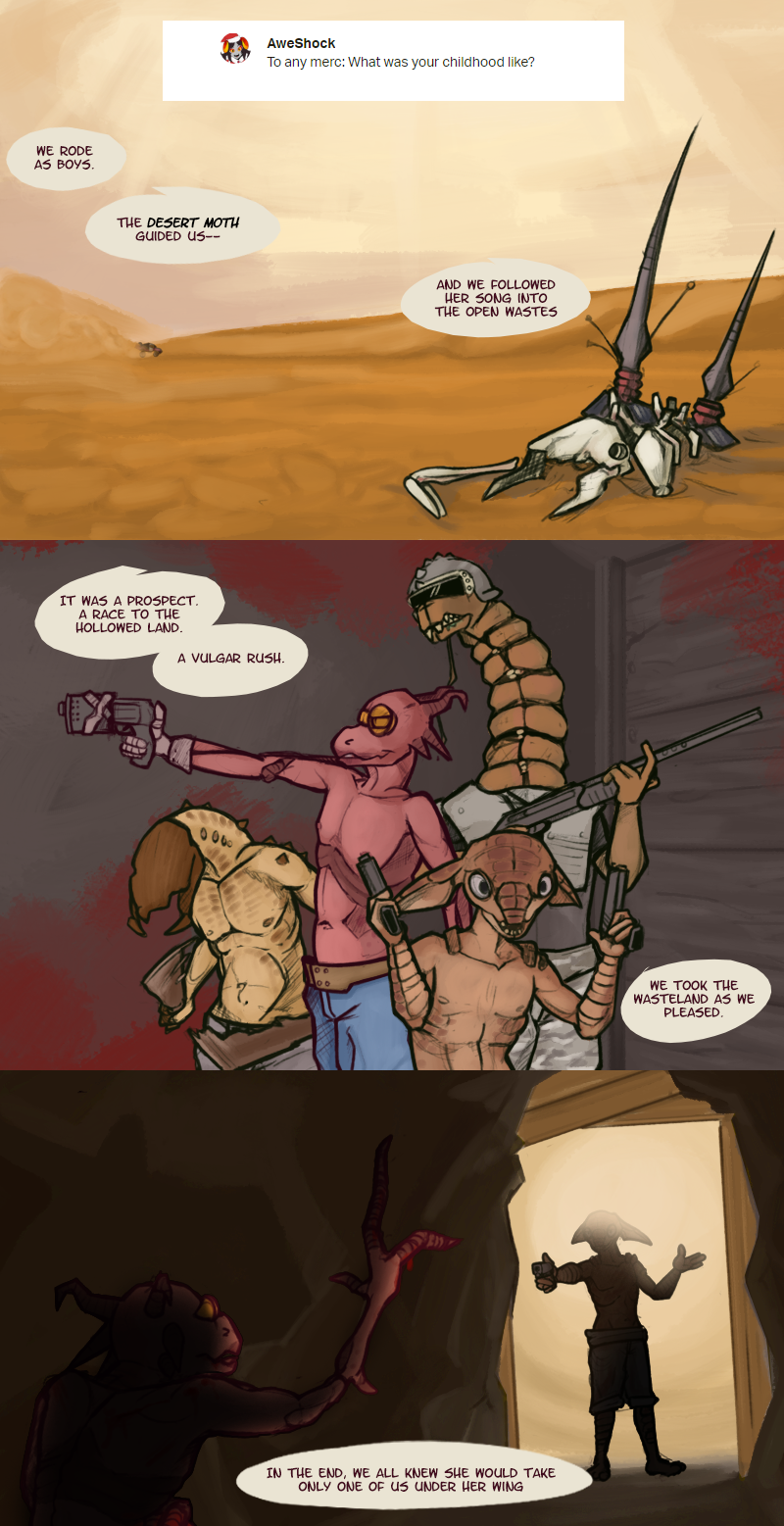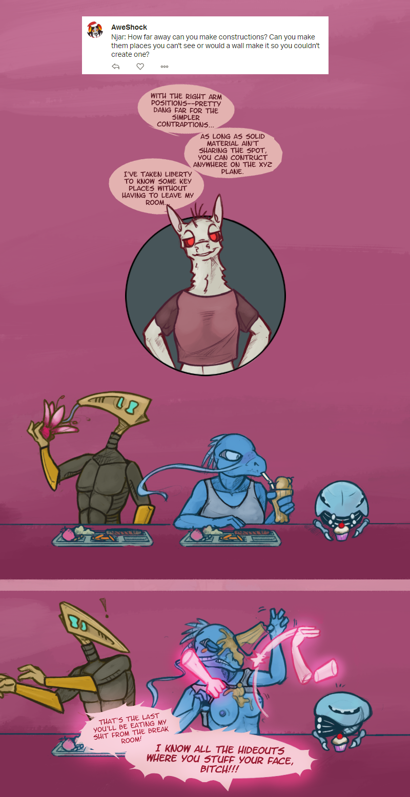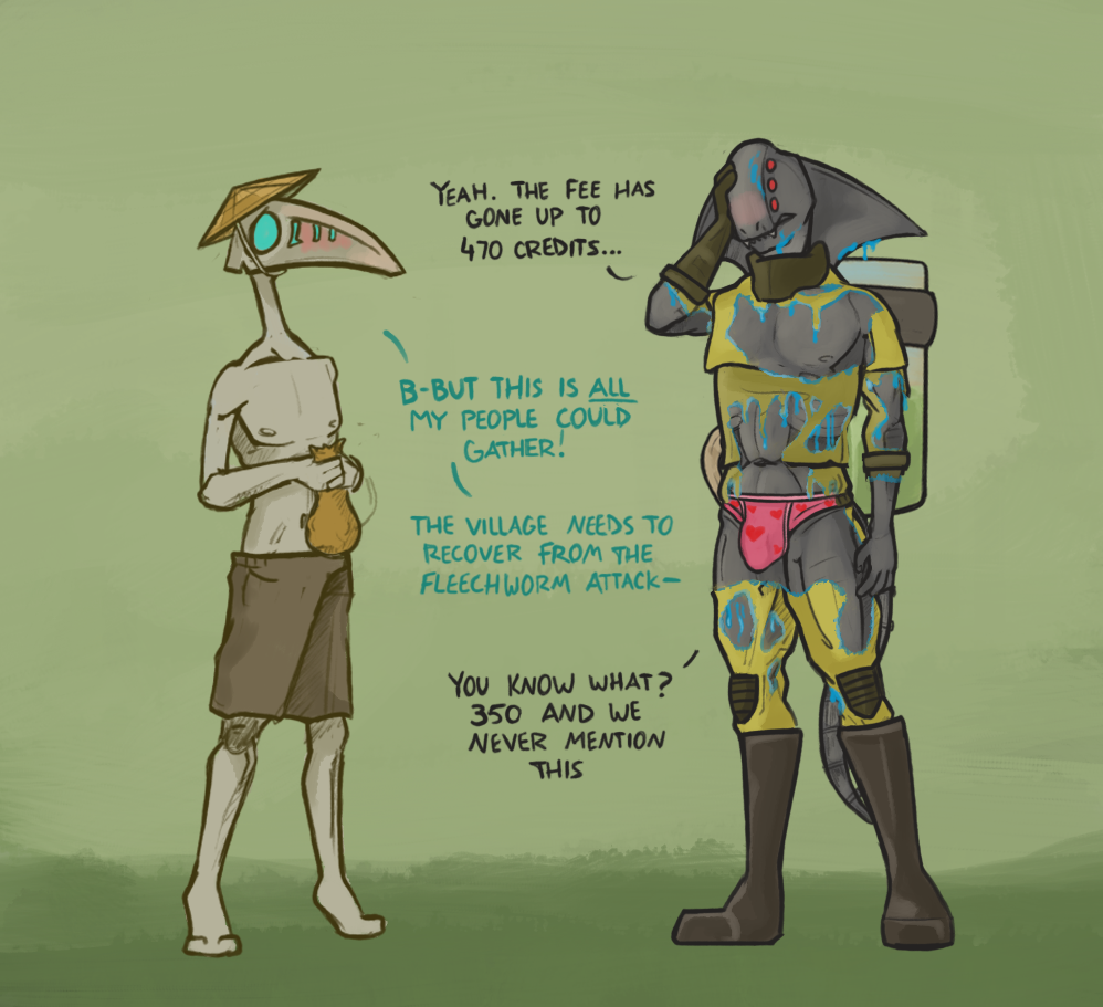 Side note, although I feel I'll never get around to it until the far future, I would love to have some traditional adventure where the players can craft their own characters. I have a list of 21 species and they all have some random assortment of skills to start off with.